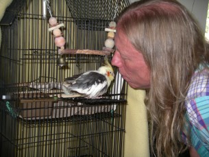 UPDATE: February 14, 2011. This morning I cry, because Gizmo is truly in decline. I guess at age 22 it's to be expected, and of course he's been in decline for some time now--years in fact--but he's been a survivor. He knows he's loved, and so he loves his life. The last two mornings when I've removed his nightime cover, he's been on the floor of his house--having fallen off his perch during the night. He's been so incredibly sweet.